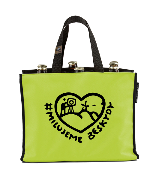 We make sustainable UAX clothing! - hand sewn in the Czech Republic uaxAccessories uaxAll productsBags and sacksBEER CARRIERdesign 1356 - MILUJEME BESKYDY 2GREEN LIMET