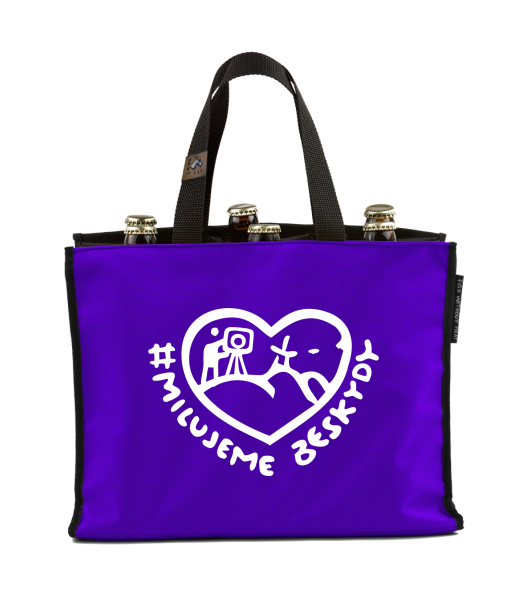BEER CARRIER - bag for beer with design 1356 MILUJEME BESKYDY 2 in color VIOLET