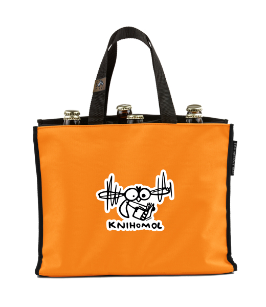BEER CARRIER - bag for beer with design 1361 KNIHOMOL in color SIGNAL ORANGE