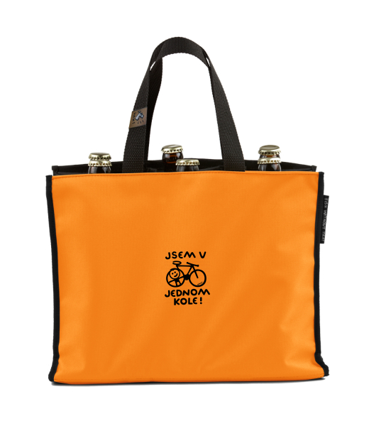 BEER CARRIER - bag for beer with design 1362 JSEM V JEDNOM KOLE in color SIGNAL ORANGE