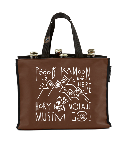 BEER CARRIER - bag for beer with design 1368 POOOĎ KAMOON HORY MUSÍM JÍT GO in color BROWN SUGAR