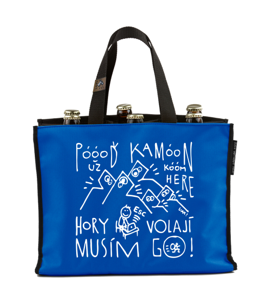 We make sustainable UAX clothing! - hand sewn in the Czech Republic uaxAccessories uaxAll productsBags and sacksBEER CARRIERdesign 1368 - POOOĎ KAMOON HORY MUSÍM JÍT GOCLASSIC BLUE