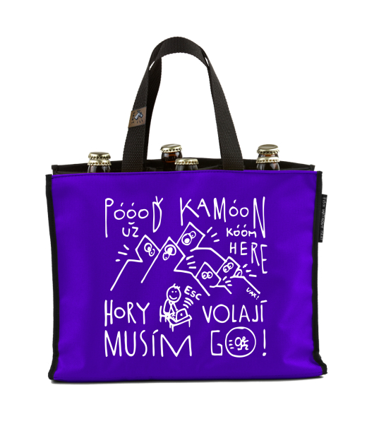 We make sustainable UAX clothing! - hand sewn in the Czech Republic uaxAccessories uaxAll productsBags and sacksBEER CARRIERdesign 1368 - POOOĎ KAMOON HORY MUSÍM JÍT GOVIOLET