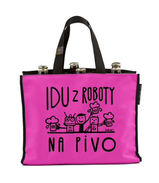 BEER CARRIER - bag for beer with design 1369 IDU Z ROBOTY NA PIVO in color INDIAN LILA