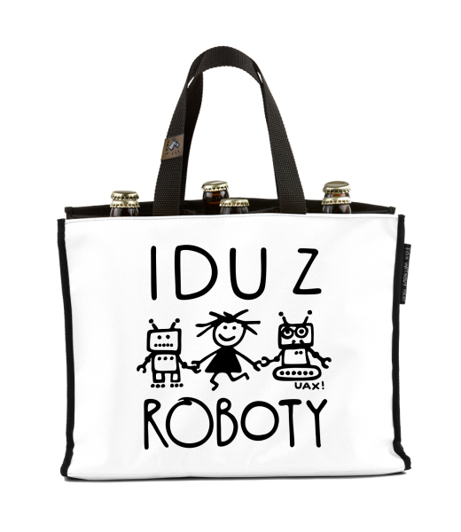 We make sustainable UAX clothing! - hand sewn in the Czech Republic uaxAccessories uaxAll productsBags and sacksBEER CARRIERdesign 1370 - IDU Z ROBOTYWHITE
