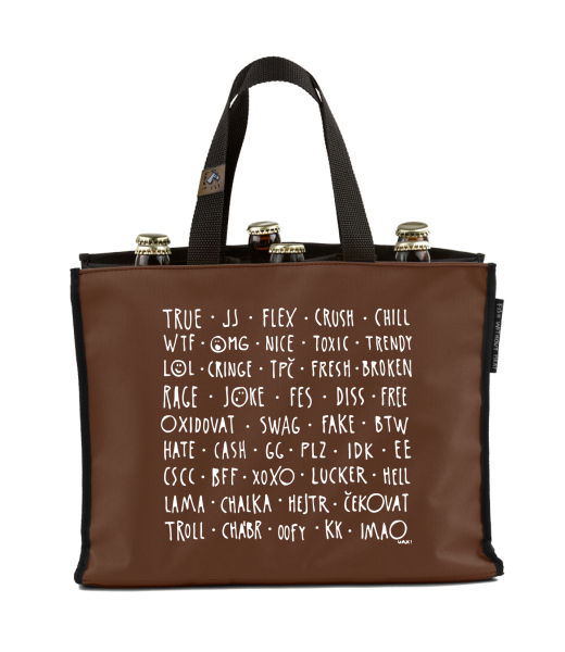 BEER CARRIER - bag for beer with design 1372 DĚTSKÝ SLANG in color BROWN SUGAR