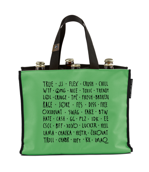 BEER CARRIER - bag for beer with design 1372 DĚTSKÝ SLANG in color BRIGHT GREEN