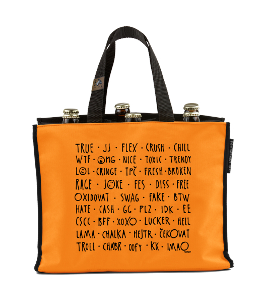 BEER CARRIER - bag for beer with design 1372 DĚTSKÝ SLANG in color SIGNAL ORANGE