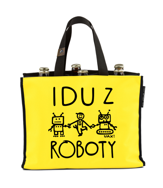 BEER CARRIER - bag for beer with design 1377 IDU Z ROBOTY 2 in color NEW YORK