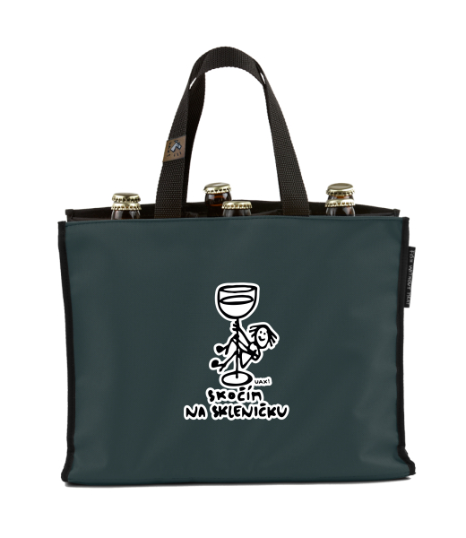 BEER CARRIER - bag for beer with design 1384 SKOČÍM NA SKLENIČKU in color GREY INK