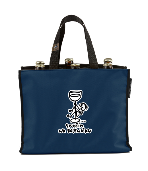 BEER CARRIER - bag for beer with design 1384 SKOČÍM NA SKLENIČKU in color MIDNIGHT BLUE