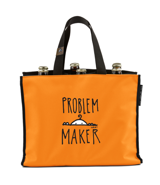 BEER CARRIER - bag for beer with design 1385 PROBLEM MAKER in color SIGNAL ORANGE