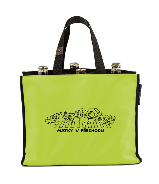 BEER CARRIER - bag for beer with design 1391 MATKY V PŘECHODU in color GREEN LIMET