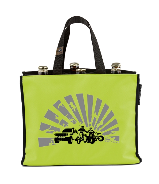 BEER CARRIER - bag for beer with design 244 OFFROAD in color GREEN LIMET