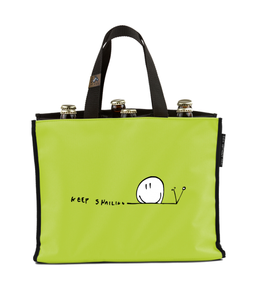 BEER CARRIER - bag for beer with design 249 KEEP SNAILING in color GREEN LIMET