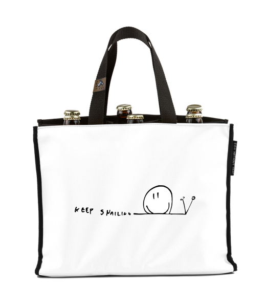 BEER CARRIER - bag for beer with design 249 KEEP SNAILING in color WHITE