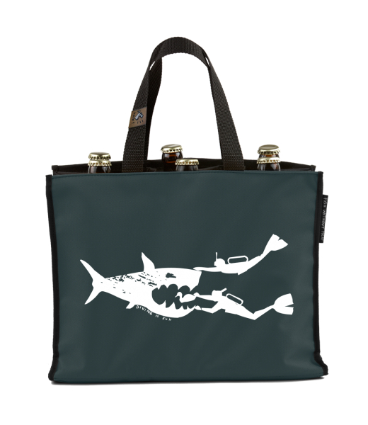 BEER CARRIER - bag for beer with design 252 DIVING IS FUN in color GREY INK