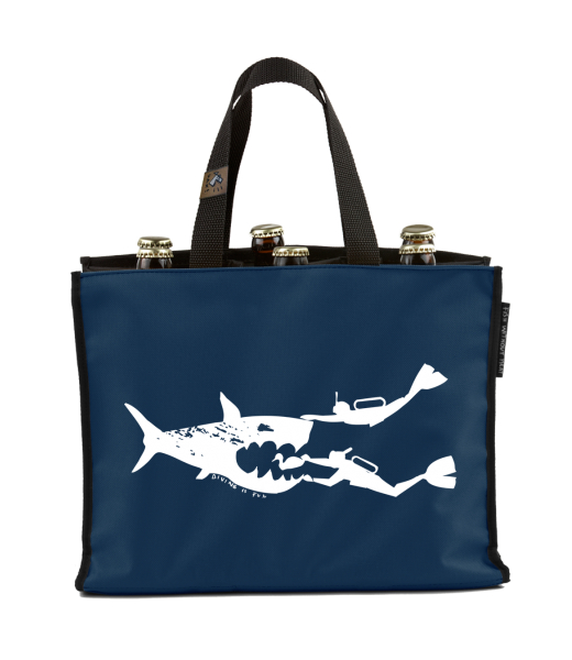 BEER CARRIER - bag for beer with design 252 DIVING IS FUN in color MIDNIGHT BLUE