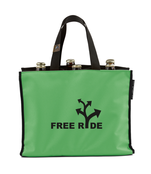 BEER CARRIER - bag for beer with design 344 FREE RIDE in color BRIGHT GREEN