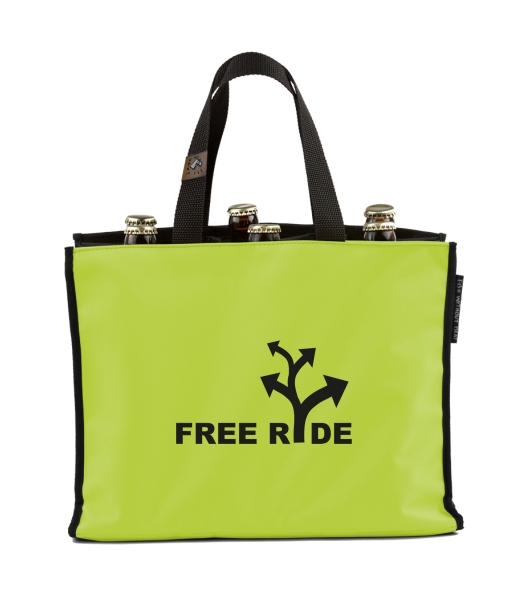 BEER CARRIER - bag for beer with design 344 FREE RIDE in color GREEN LIMET