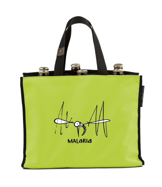 BEER CARRIER - bag for beer with design 361 MALARIA in color GREEN LIMET
