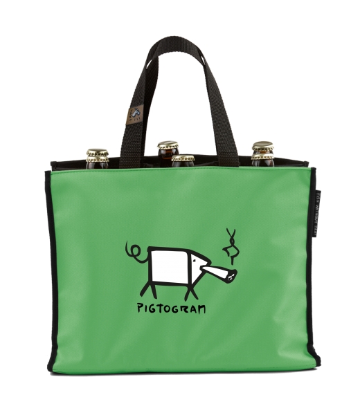 BEER CARRIER - bag for beer with design 367 PIGTOGRAM in color BRIGHT GREEN