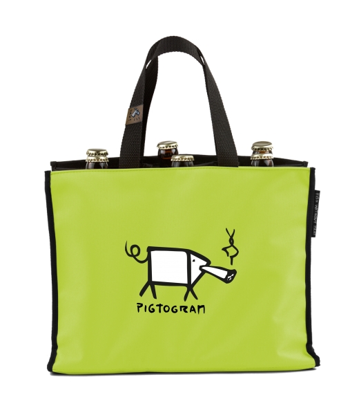 BEER CARRIER - bag for beer with design 367 PIGTOGRAM in color GREEN LIMET