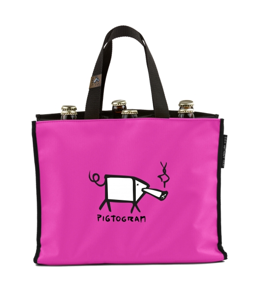 BEER CARRIER - bag for beer with design 367 PIGTOGRAM in color INDIAN LILA