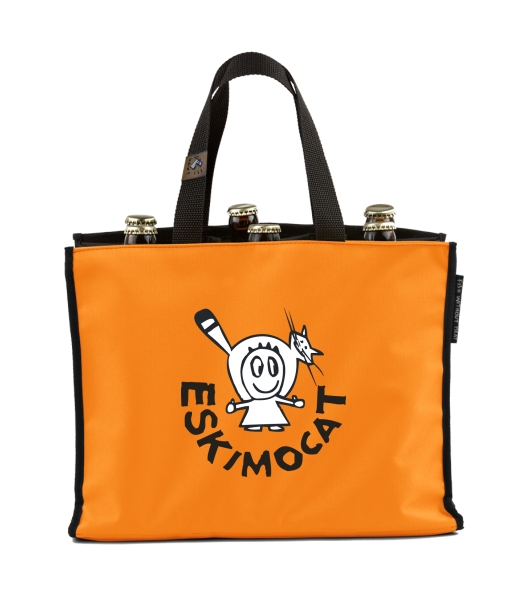 BEER CARRIER - bag for beer with design 375 ESKIMOCAT in color SIGNAL ORANGE