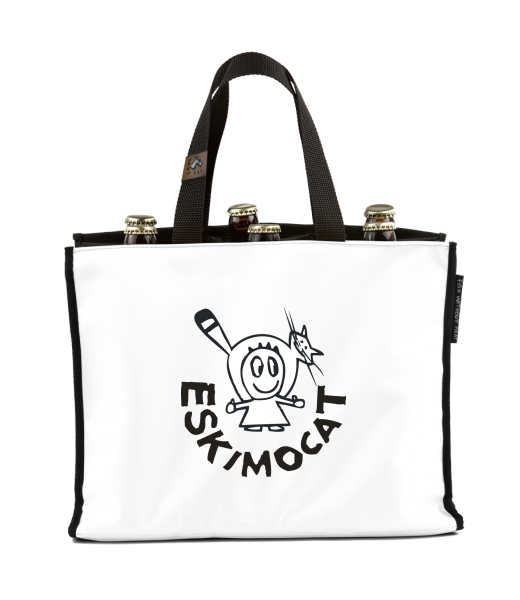 BEER CARRIER - bag for beer with design 375 ESKIMOCAT in color WHITE