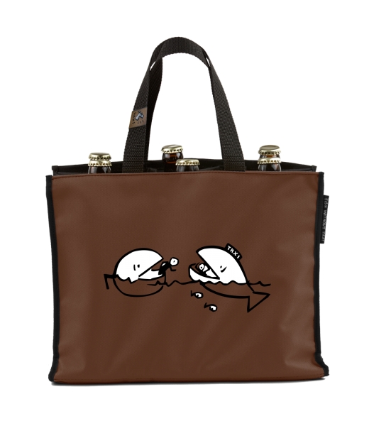 BEER CARRIER - bag for beer with design 385 FISH TAXI in color BROWN SUGAR