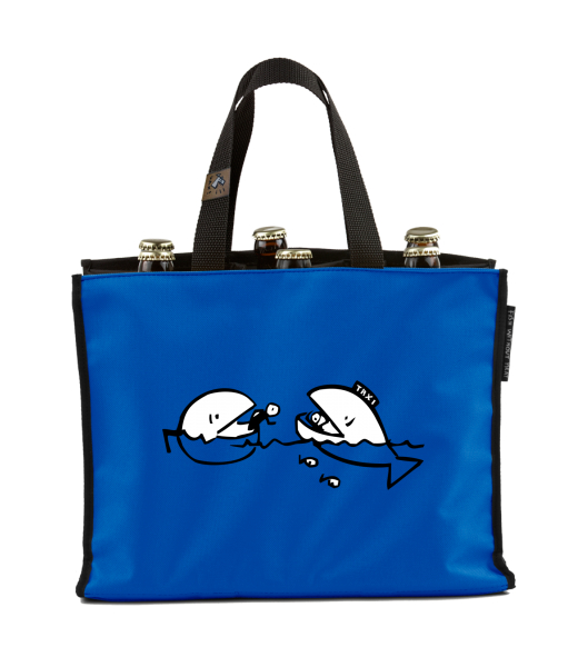 BEER CARRIER - bag for beer with design 385 FISH TAXI in color CLASSIC BLUE