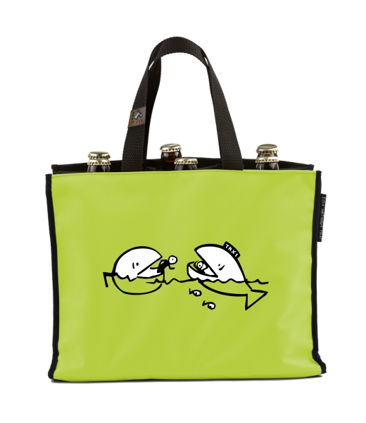BEER CARRIER - bag for beer with design 385 FISH TAXI in color GREEN LIMET