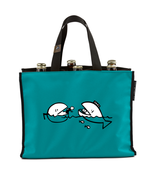 BEER CARRIER - bag for beer with design 385 FISH TAXI in color TURQUOISE