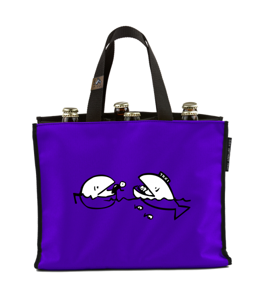BEER CARRIER - bag for beer with design 385 FISH TAXI in color VIOLET