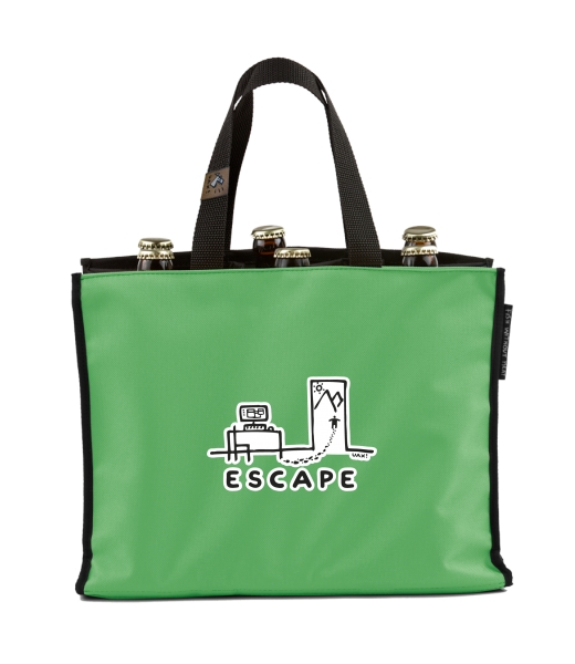 BEER CARRIER - bag for beer with design 39 ESCAPE in color BRIGHT GREEN