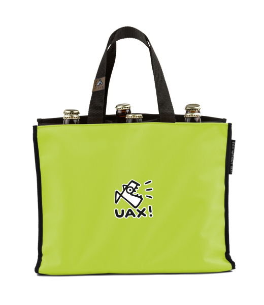 BEER CARRIER - bag for beer with design 412 LOGO UAX! SMALL in color GREEN LIMET