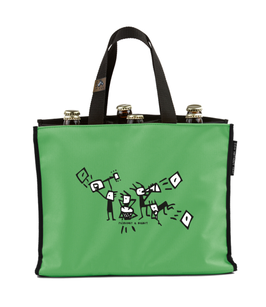 BEER CARRIER - bag for beer with design 439 PICOVINKYABIGBIT in color BRIGHT GREEN