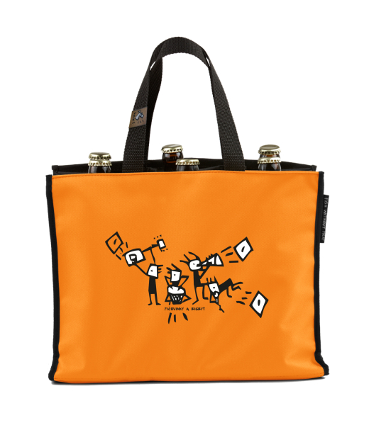BEER CARRIER - bag for beer with design 439 PICOVINKYABIGBIT in color SIGNAL ORANGE