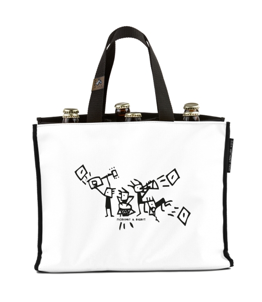 BEER CARRIER - bag for beer with design 439 PICOVINKYABIGBIT in color WHITE