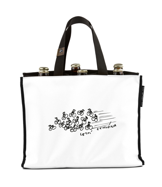 BEER CARRIER - bag for beer with design 505 LETNI CYKLONA in color WHITE