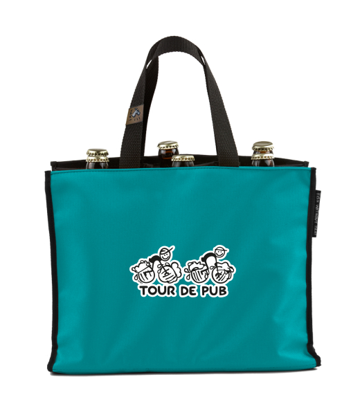 BEER CARRIER - bag for beer with design 513 TOUR DE PUB in color TURQUOISE