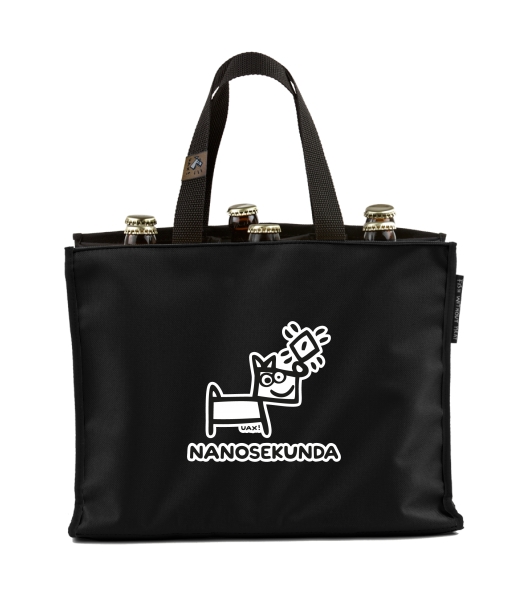 BEER CARRIER - bag for beer with design 516 NANOSEKUNDA in color BLACK