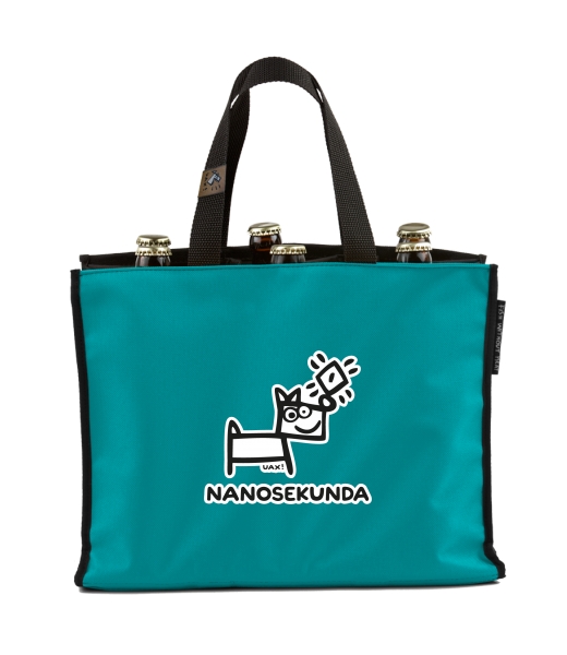 BEER CARRIER - bag for beer with design 516 NANOSEKUNDA in color TURQUOISE