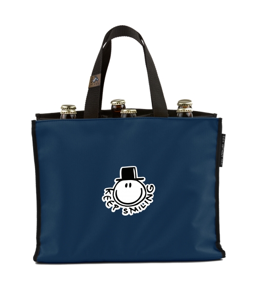 BEER CARRIER - bag for beer with design 517 KEEP SMILING in color MIDNIGHT BLUE
