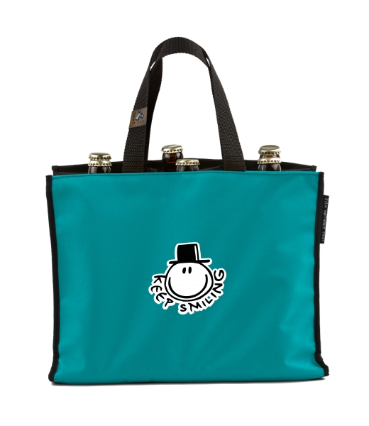 BEER CARRIER - bag for beer with design 517 KEEP SMILING in color TURQUOISE