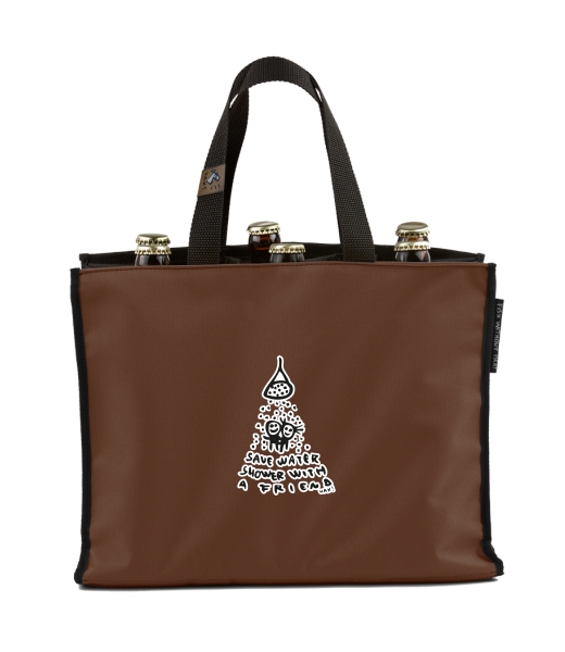 BEER CARRIER - bag for beer with design 519 SAVE WATER in color BROWN SUGAR