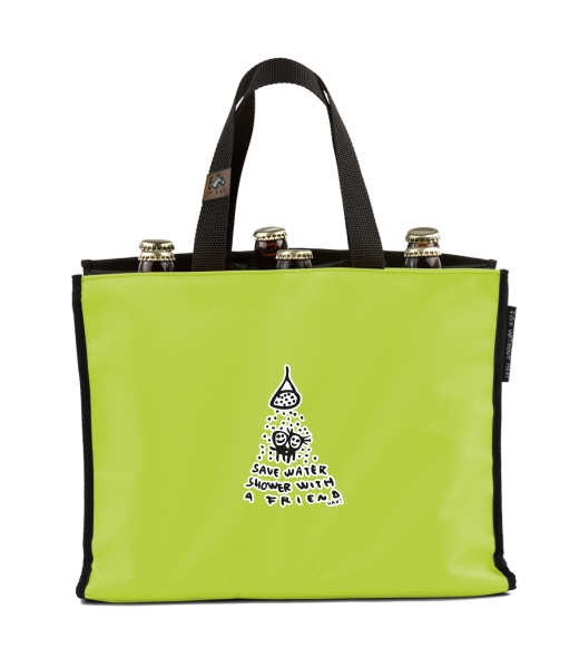 BEER CARRIER - bag for beer with design 519 SAVE WATER in color GREEN LIMET