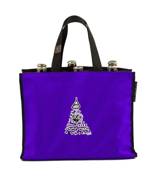 BEER CARRIER - bag for beer with design 519 SAVE WATER in color VIOLET