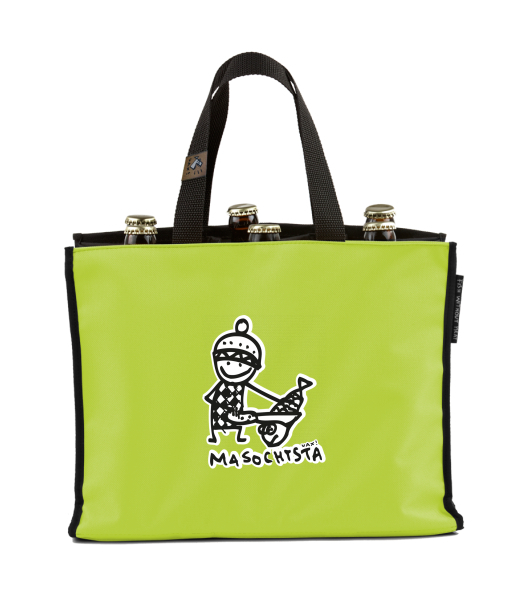 BEER CARRIER - bag for beer with design 523 MASOCHYSTA in color GREEN LIMET